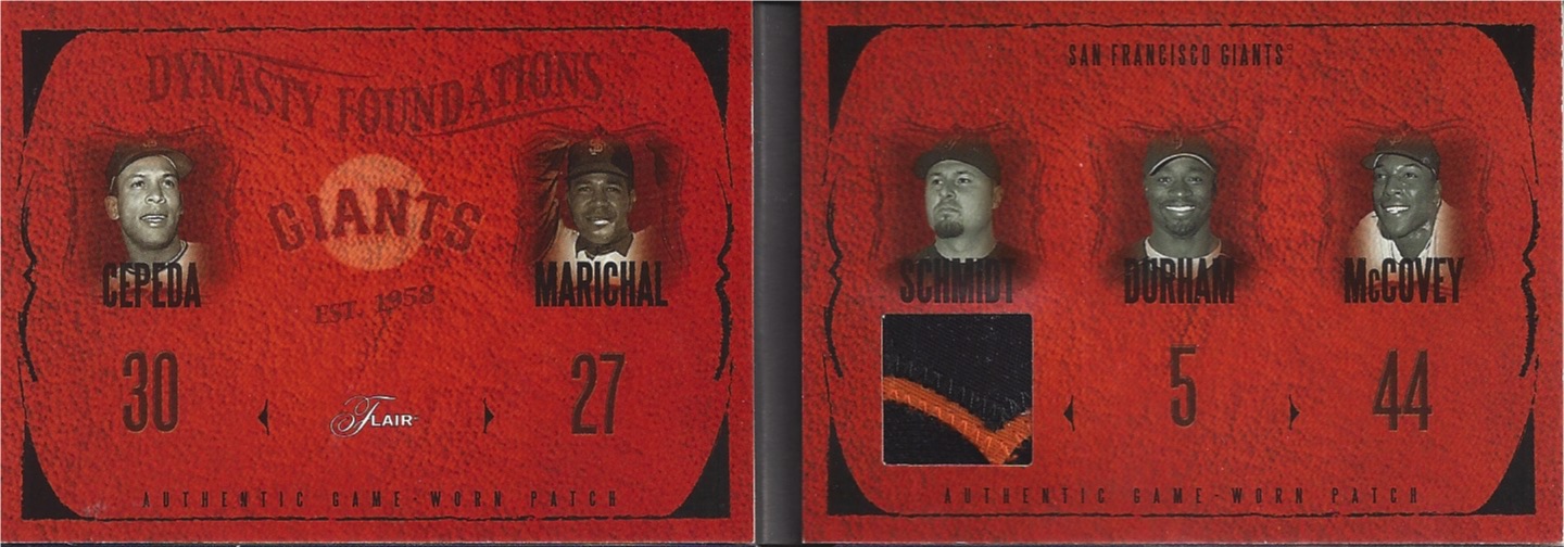 This book card features 5 Giants, 3 HOFers along with Ray Durham and Jason Schmidt but Schmidt is obviously the star and focus of this card. While the booklet features all 5 players, only Schmidt has a swatch, a pretty nice patch swatch. While this is a pretty cool card for a Giants collector like me, it is a little weak to have to add this as a McCovey collector. Now a 5-way patch with these players would offer a little more to get excited about.